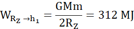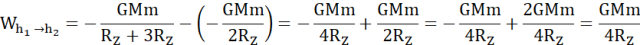 Policz, jaką pracę należy wykonać, by podnieść ciało na wysokość h2 = 3RZ, jeśli na podniesienie ciała na wysokość h1 = RZ wykonano pracę W = 312 MJ