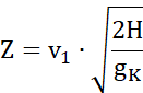 Gdzie Z – długość rzutu (zasięg) [m],