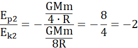 P – 2. Stosunek energii potencjalnych satelitów (satelity 2 do satelity 1) wynosi 0,5.