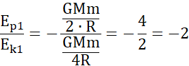 P – 4. Stosunek energii kinetycznej do potencjalnej jest taki sam dla satelitów 1 oraz 2 i wynosi