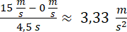 Przyspieszenie (a) w ruchu jednostajnie zmiennym jest stosunkiem zmiany prędkości (∆v) do czasu (t), w którym nastąpiła. Z wykresu wybieramy dowolne punkty i odczytujemy z nich dane pomiarowe.