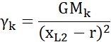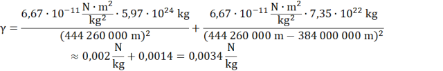 Natężenie pola grawitacyjnego w punkcie L2 to suma natężeń pola względem Ziemi i Księżyca: