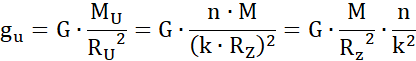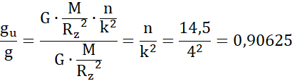 Policz stosunek przyspieszenia grawitacyjnego przy powierzchni Urana do przyspieszenia grawitacyjnego na Ziemi.