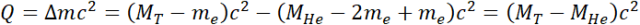 Wyznacz energię wyzwoloną w reakcji za pomocą formuły