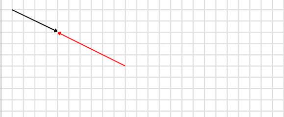 Najprościej dokonać konstrukcji poprzez przedłużenie kierunku wektora oryginalnego. Wówczas na pewno kierunek będzie zgodny. Zwróć uwagę, że wektor oryginalny jest przekątną prostokąta o wymiarach 2 kratki x 4 kratki. Oznacza to, że wektor półtora razy dłuższy, musi być przekątną prostokąta, którego boki są każdy półtora razy dłuższy. W ten sposób otrzymujemy wymiary prostokąta 3 kratki x 6 kratek. Na koniec dorysuj zwrot wektora, w kierunku przeciwnym.
