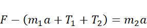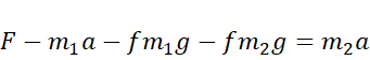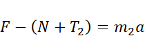 Zapisz dynamiczne równania ruchu, opisujące siły działające na ciało. Rozpisz wszystkie siły działające na układ (również tarcia i naciągu nici). Zapisz równania dla każdego z klocków osobno. Podstaw następnie siłę naciągu z drugiego równania do pierwszego i oblicz przyspieszenie układu. Pamiętaj, że jest ono takie samo dla obu klocków.