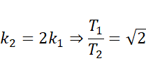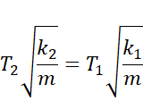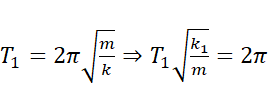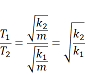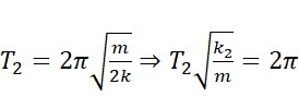 . Przekształć wyrażenia w taki sposób, by równały się stałej występującej w równaniu, np. PI. Porównaj obie wielkości i oblicz wartość stosunku, wiedząc, że dla dwóch identycznych sprężyn połączonych równolegle ich stałe sprężystości sumują się.