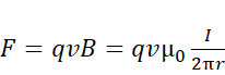 Siłą Lorentza będzie skierowana poziomo, ze zwrotem w stronę przewodnika. Jej wartość: