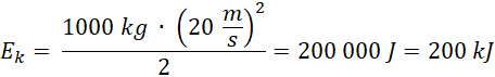 Energia kinetyczna tego samochodu wynosi C. 200 kJ.