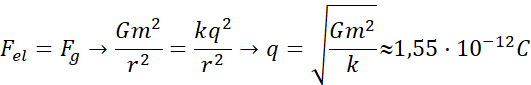 Znajdź ładunek, jakitrzeba nanieść na kulki o masach 18 g, aby siła przyciągania grawitacyjnego równoważyła siłę odpychania elektrostatycznego.