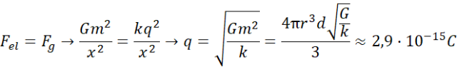 Wiedząc, że dwie krople wody, każda o promieniu 2 mm są jednakowo naelektryzowane i siła przyciągania grawitacyjnego równoważy siłę odpychania elektrostatycznego, znajdź wartość ładunku zgromadzonego na każdej z nich.