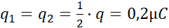 Dwie jednakowe piłeczki, każda o masie 3 g i promieniu 2 cm, umieszczono w tubie, a następnie jedną z nich naelektryzowano ładunkiem 0,4 mC i spuszczono na drugą. Znajdź wartość ładunków na piłeczkach po zetknięciu ze sobą.