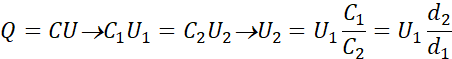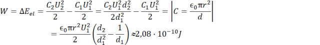 Dwie płytki o średnicy 20 cm i masie 5 dag każda odległe od siebie o 1 cm podłączono do napięcia 4,5 V/ Jaką pracę należy wykonać, aby je rozsunąć na 2 cm, jeśli odłączono kondensator.
