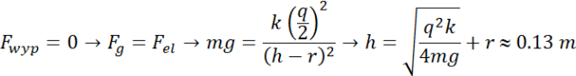 Dwie jednakowe piłeczki o masie m = 3 g i promieniu r = 2 cm umieszczono w tubie, a następnie jedną z nich naelektryzowano ładunkiem 0,4 mC i spuszczono na drugą. Znajdź wysokość h, na jaką wzniosła się druga piłeczka
