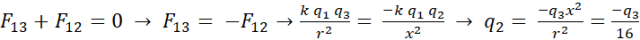 Znajdź taką wartość ładunku q2, aby ładunki q3 i q1 pozostały w spoczynku