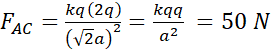 Wypadkowa siła działająca na ładunek umieszczony w punkcie A to