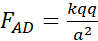 Siła oddziaływania Coulombowskiego między ładunkami umieszczonymi w punktach A i D dana jest wzorem.