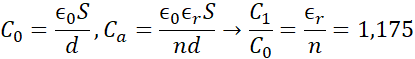 Sprawdź, jak zmieniła się pojemność kondensatora próżniowego po zwiększeniu odległości między okładkami 4 razy i wypełnieniu go dielektrykiem o er = 4,7 .