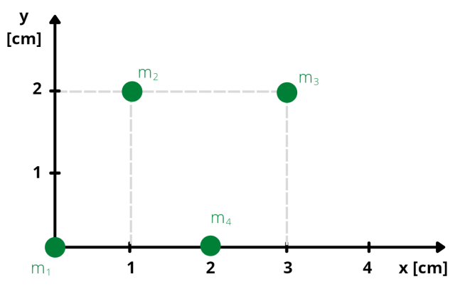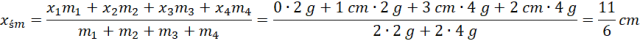 Na podstawie danych zamieszczonych w treści zadania narysuj położenie kulek w układzie współrzędnych i oblicz współrzędne środka masy układu.