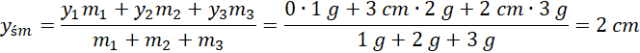 Na podstawie rysunku przedstawionego w podręczniku podaj współrzędne kulek oraz oblicz współrzędne środka masy tworzonego przez nie układu w sytuacji, gdy przesuwamy układ o 1 cm w prawo.