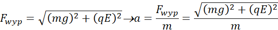 Aby wyznaczyć okres drgań wahadła, trzeba najpierw znaleźć wypadkową siłę działającą na ciało. Skoro siła elektrostatyczna i grawitacyjna są do siebie prostopadłe, to ich wypadkowa to