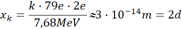 Gdzie xk jest końcowym położeniem protonu, a więc punktem najbliższym do jądra.