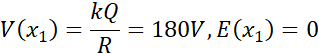 Dla r1 = 10 cm znajdujemy się wewnątrz kuli, a jak wiadomo wewnątrz kuli przewodzącej, natężenie pola wewnątrz jest 0, natomiast potencjał jest wewnątrz taki sam, jak na brzegach z tego powodu korzystając ze wzoru na potencjał, dostaniemy: