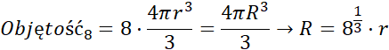 Skorzystano ze wzoru na objętość kuli (w której skład wchodziło 8 małych kul o promieniu r) o promieniu R i wzoru na potencjał wewnątrz przewodzącej kuli, który warto przypomnieć, jest taki sam wewnątrz, jak i na brzegach.