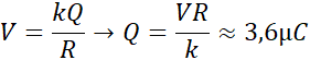 Znajdź ładunek zgromadzony na kuli generatora Van de Graaffa o promieniu R = 12 cm i napięciu między czaszą a ziemią równym 270 kV.