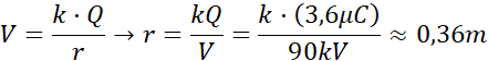 Znajdź odległość od środka czaszy generatora Van de Graffa, w której potencjał wynosi 90 kV.