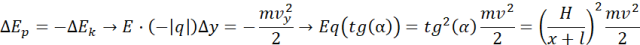 Przez kąt a oznacza się kąt, o jaki odchyli się z początkowego kierunku kropelki. Wiadomo, że po wylocie kropli z obszaru obecności pola można napisać:
