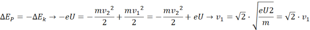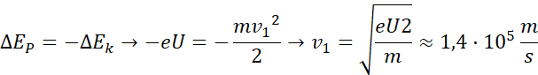 Skorzystano z zasady zachowania energii, a także założono, że elektron wlatując do elektrody, ma tę samą prędkość, co wylatując, dzięki czemu można było skorzystać ze wzoru na drogę w ruchu jednostajnym.