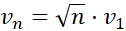 Można zatem wyjść z wnioskiem, że dla n-tej przerwy między elektrodami elektron będzie miał prędkość