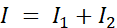 Z I Prawa Kirchhoffa suma natężeń prądów wchodzących do węzła jest równa sumie natężeń prądów wychodzących z węzła, dlatego I = I1 +I2.