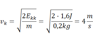 Zapisz wyrażenie na energię kinetyczną opisującą energię całkowitą układu jako sumę energii kinetycznej ciała i energii potencjalnej na danej wysokości. Energia całkowita ciała na końcu ruchu jest jedynie energią kinetyczną. Z wartości energii kinetycznej, którą otrzymałeś w podpunkcie a) zadania 13 (s. 63) oblicz prędkość, przekształcając wzór na energię kinetyczną.