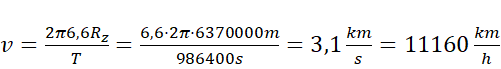 . Oblicz wartość, wiedząc, że promień orbity jest 6,6 razy większy od promienia Ziemi.