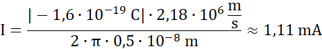 Oblicz średnie natężenie prądu, które jest spowodowane ruchem elektronu wokół jądra atomu wodoru po orbicie.