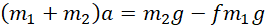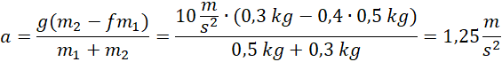 Zapisujemy wzór na siłę wypadkową. Następnie korzystamy z drugiej zasady dynamiki i wzoru na siłę tarcia, aby obliczyć przyspieszenie układu. Korzystając z równań ruchu, obliczamy prędkość końcową.