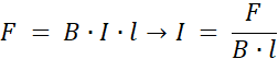 Korzystamy ze wzoru na wartość siły elektrodynamicznej działającej na przewodnik, przekształcając go w odpowiedni sposób.