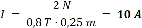 W tym zadaniu musisz obliczyć, wartość natężenia prądu płynącego przez przewodnik, na który działa siła elektrodynamiczna.