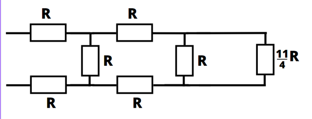 Po prawej stronie 3 oporniki są połączone szeregowo: