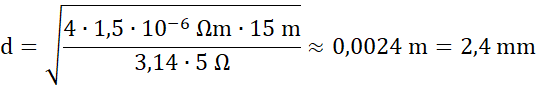 Oblicz średnicę drutu o znanym oporze właściwym, długości i oporze.