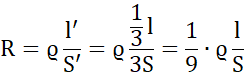 Długość zmniejszyła się 3 razy, a przekrój wzrósł 3 razy: