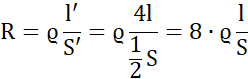 Długość zwiększyła się 4 razy, a przekrój zmalał 2 razy: