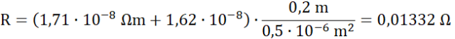 Oblicz opór elektryczny połączonych szeregowo przewodów: miedzianego i srebrnego