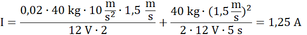 Prąd pobierany z akumulatora wynosi 1,25 ampera.