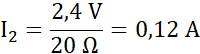 Spadek napięcia na oporniku 2 wynosi 2,4 V, a natężenie prądu – 0,12 A.