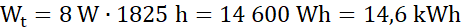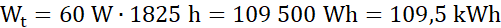 Roczny czas świecenia się żarówek: