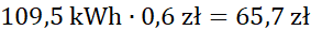 Zaoszczędzimy 87% energii elektrycznej, czyli 56,94 zł.