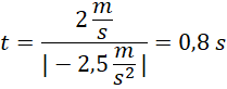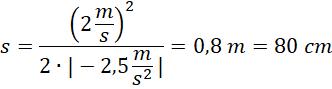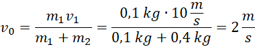 Na podstawie zasady zachowania pędu obliczamy prędkość początkową układu. Zapisujemy wzór na siłę wypadkową. Następnie korzystamy z drugiej zasady dynamiki i wzoru na siłę tarcia wyznaczając wartość opóźnienia układu. Za pomocą równań ruchu w ruchu jednostajnie opóźnionym obliczamy czas i drogę przebytą przez układ.